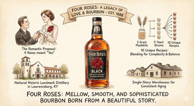 フォアローゼズ ブラックは、単なるお酒ではなく、「10種の原酒が生む技術」と「ロマンチックな愛の伝説」が詰まった一本です。